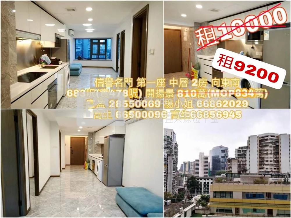 信譽名門 第一座 中層 2房 向東南 683呎(實478呎) 開揚景 租9200(M$9476) 富盈地產 28550069 高生 66500096 Laurence 66856945 楊小姐 66862029 有關樓宇廣告法定資訊及資料,請向職員查閱